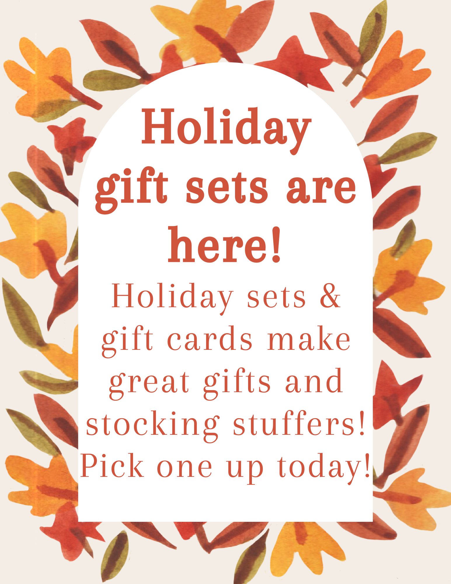Gift sets are here for the season! Stop in and treat yourself to something new, or grab an easy gift. Can’t decide what to get someone or don’t know exactly what they’ll like? A gift card can be used for any product or hair, nail, or tanning services in the salon!